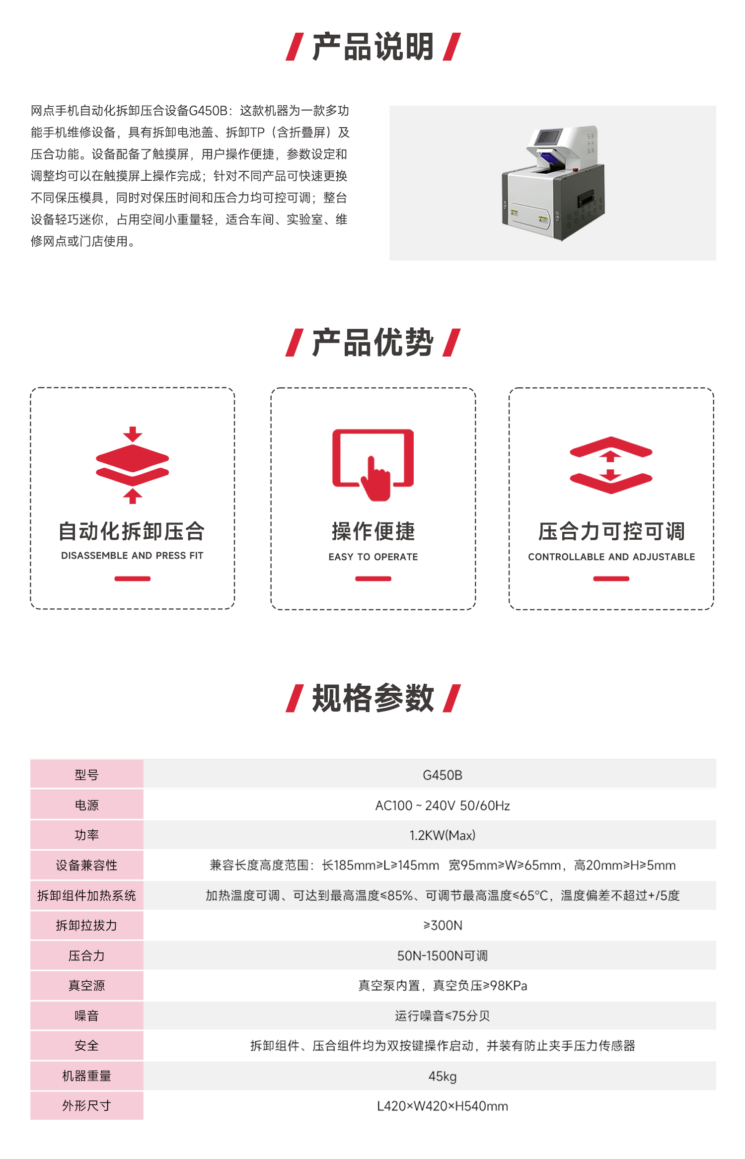 G450B 網(wǎng)點(diǎn)手機(jī)自動(dòng)化拆卸壓合設(shè)備